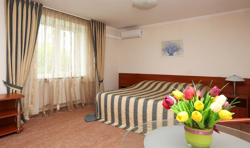 Просторный уютный двухкомнатный (гостиная, спальня) номер с одной большой кроватью и диваном. Отлично подходит для семейного отдыха с детьми. Возможность предоставления дополнительного места. Ежедневная уборка, круглосуточная работа службы приема и размещения.