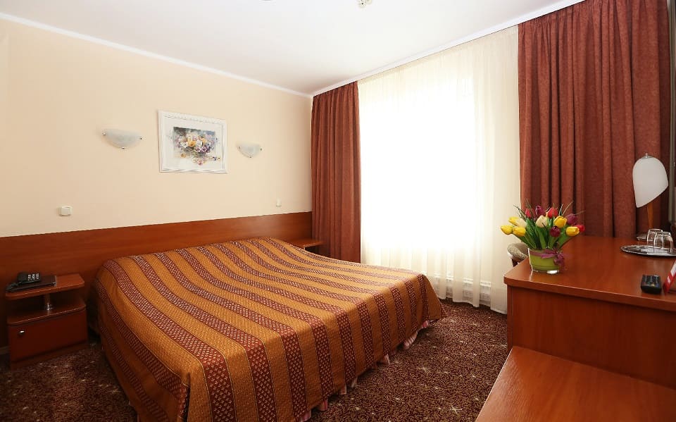 Просторный улучшенный однокомнатный номер с большой кроватью. Ежедневная уборка, круглосуточная работа службы приема и размещения.